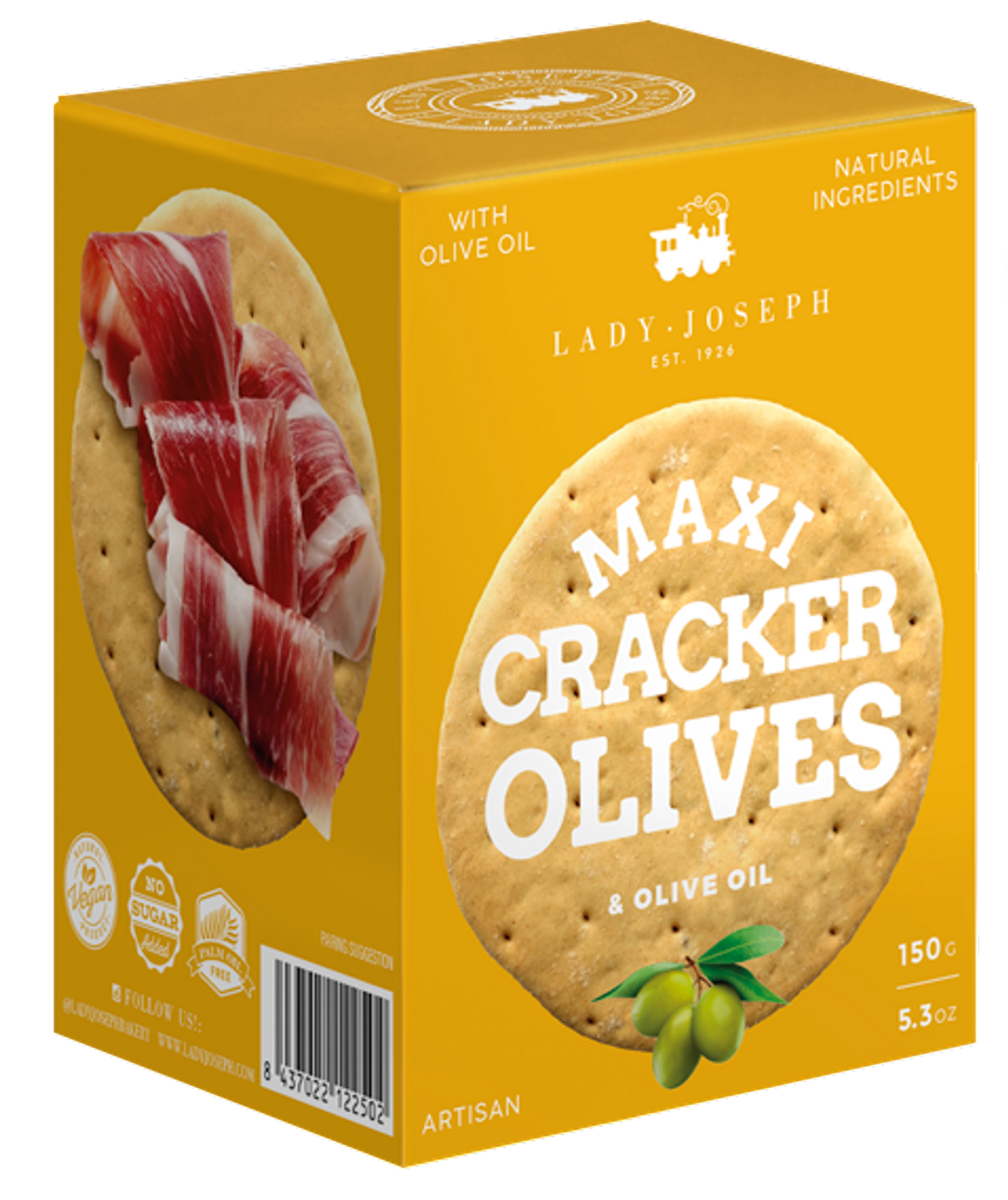Grote ambachtelijke crackers met heerlijke groene olijven. Combineer de lekkerste Iberische Ham of een andere combinatie.
